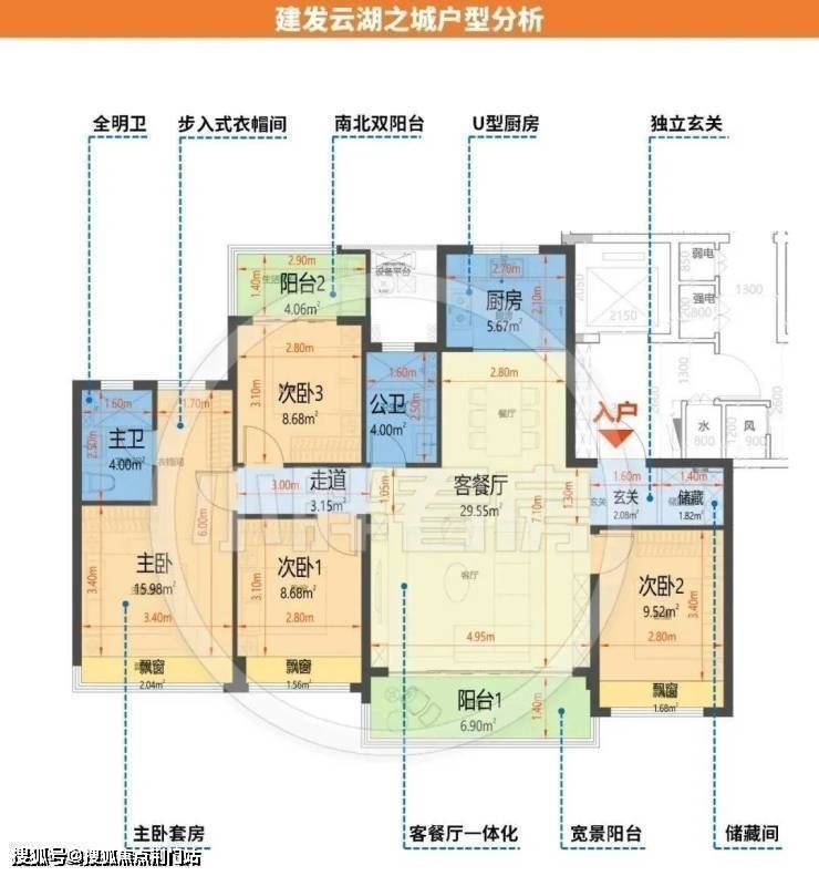 建面约105方三房两厅两卫