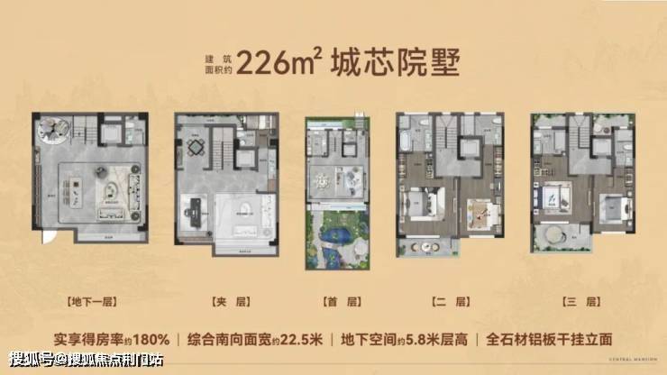 走进226㎡户型的样板房空间内,地上3层、地下2层,前庭后院两个花园,实际使用面积超过了400㎡,奢阔的空间带来的是丰盛的生活。