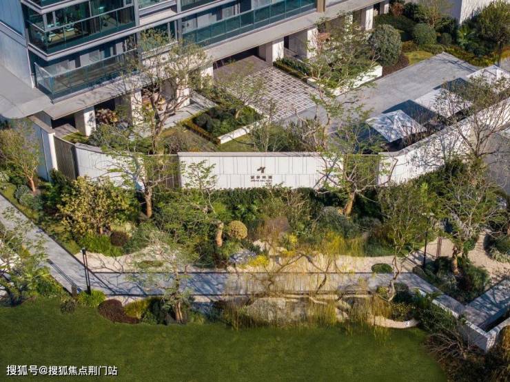 比如,已经实景呈现的7号楼,主打「邻里互联+club med」的主题敞开式架空层,包含了休憩、会客、阅读空间,搭配上枯山水造景,景观和架空层交融,互为风景。