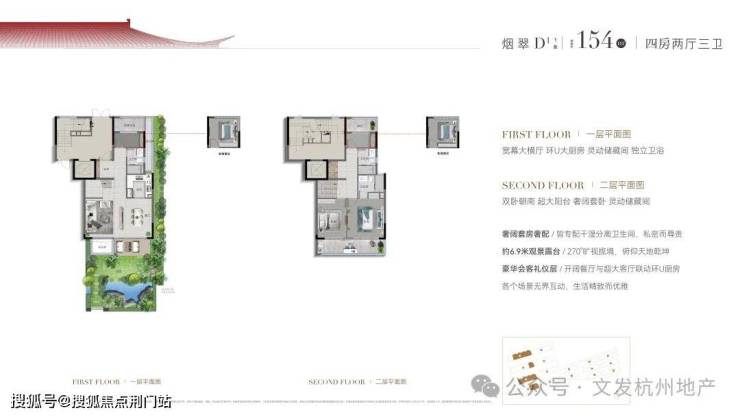 第四,纯粹低密唐风院墅区、前后大露台、独门独户私家花园的天地院墅。