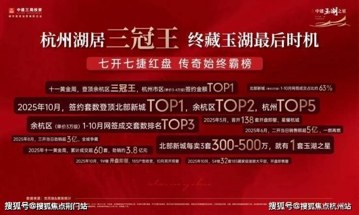 如果说“领誉”是品质的背书,那么“霸榜”就是市场最直接的投票。2025年,中建·玉湖之星将“热销”刻入项目基因,一整年的持续火爆,成就杭州楼市的“玉湖现象”。