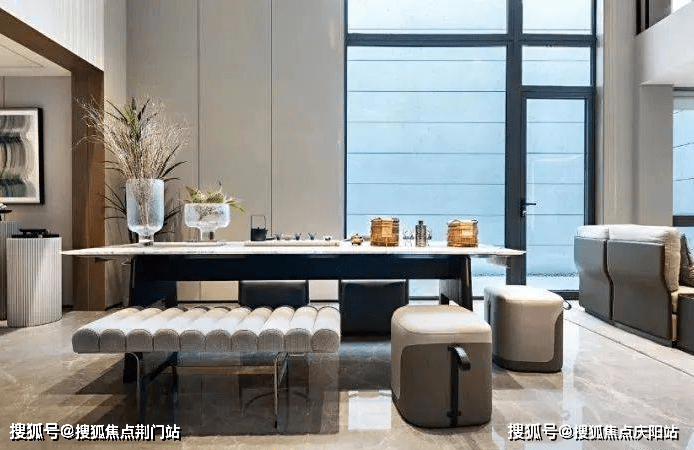 约218㎡的边套,最让人种草的则是“ 环幕会客厅”。一楼餐客厅少见地做到了270°采光,拥有近10米的L型采光面,阳光明媚到伤眼。