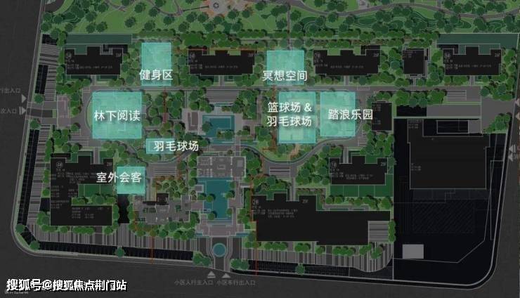 细看,涌泉叠水,高低错落、动静相宜;下沉式卡座,三五友邻可畅聊天地。搭配水景旁造型精美的乌桕等植物,一年四季流转出不同的风景,带来归家的好心情。