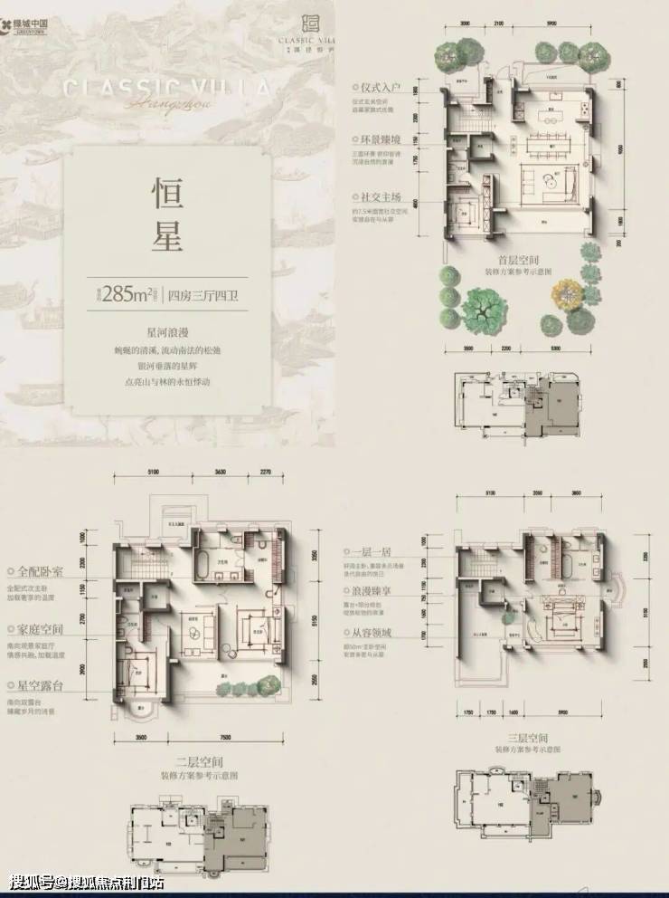 叠排产品遵循“现代形、东方意”内涵,低密产品,最主要追求的就是“有天有地,有私密感”,所以附加值的打造,变得尤其重要。所以,我们先讲的是附加值。建筑面积约235~300㎡四层庐系叠墅,