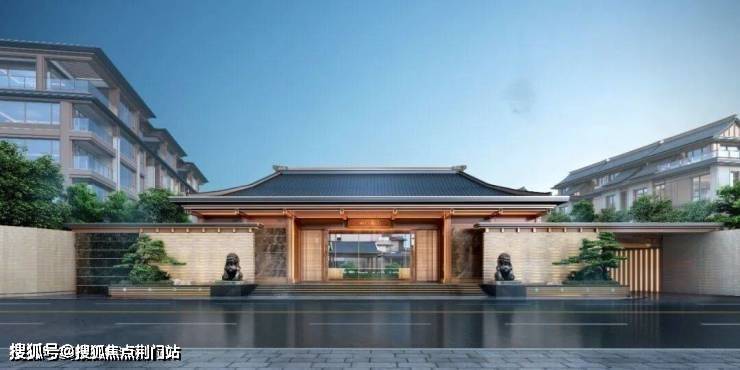 归家大门复刻“世界文化遗产”良渚宫墙形制,以约68米的大气门楣,营造尊崇的威仪。