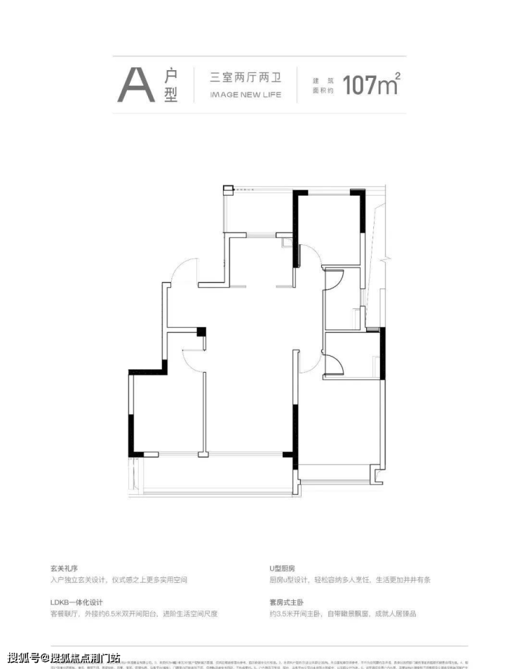 A户型丨三室两厅两卫丨建筑面积约107㎡