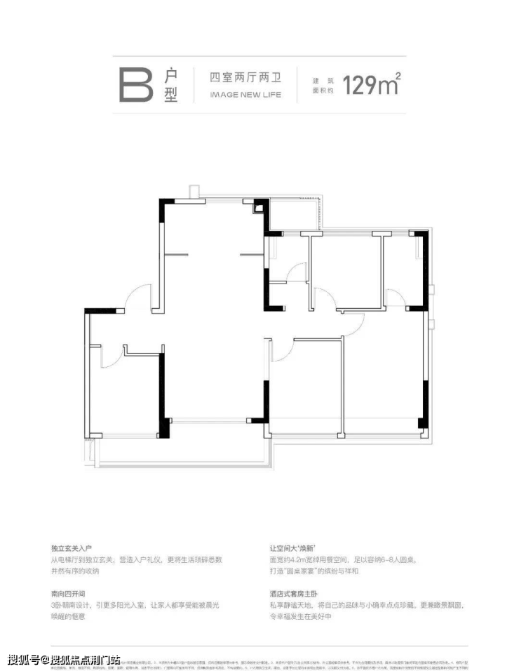 B户型丨四室两厅两卫丨建筑面积约129㎡