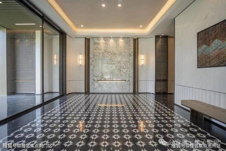 融合多个高奢酒店设计理念,打造约30米宽、约9米高的归家门庭,聚合光影艺术装置、四根黄金比例的罗马柱,以及镜面水庭,既有满满的仪式感,又有尊崇的归家体验。