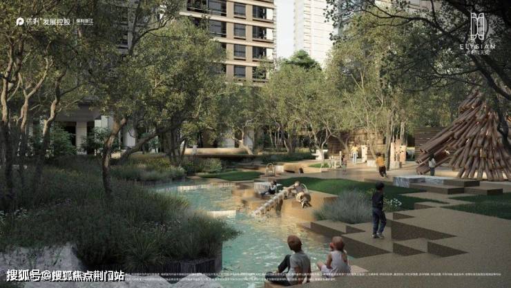 举个例子,单是与水有关的,就包括了约1200㎡围合水院、室内恒温泳池、悬挑无边际泳池,一条约190米长的儿童戏水溪涧,沿溪布满了无动力玩水设施。