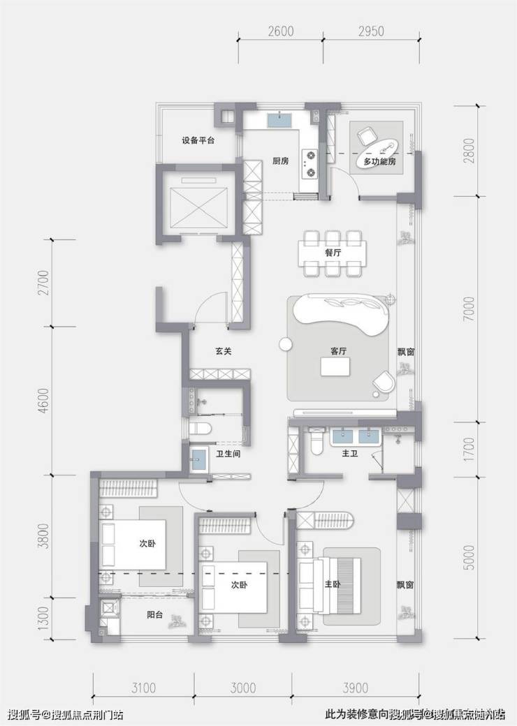 百变X空间:可打造超大面宽客餐厅+大三房