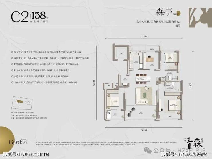 一进院:酒店式归家入口;二进院:森林溪境风景游园;三进院:定制酒店式归家入户。