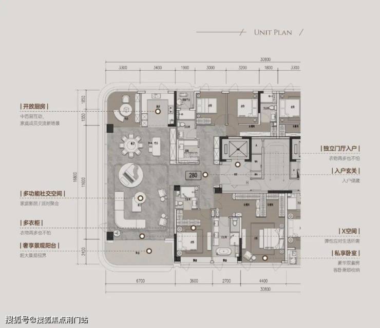 项目全盘规划188-288㎡大平层户型,以纯粹面积段确保圈层统一性,精准回应高端客群需求。户型设计打破传统边界,如280㎡“三面端厅”格局,以开阔空间视野与功能布局,重塑当代大宅体验。