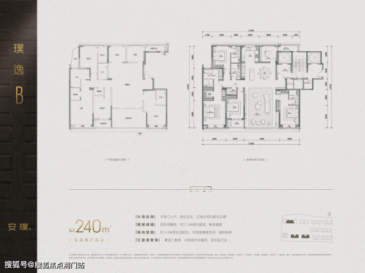 建面约240㎡、280㎡的五房,都罕见地做了南厅布局,LDKB一体的大公区,面积都超过了70㎡!