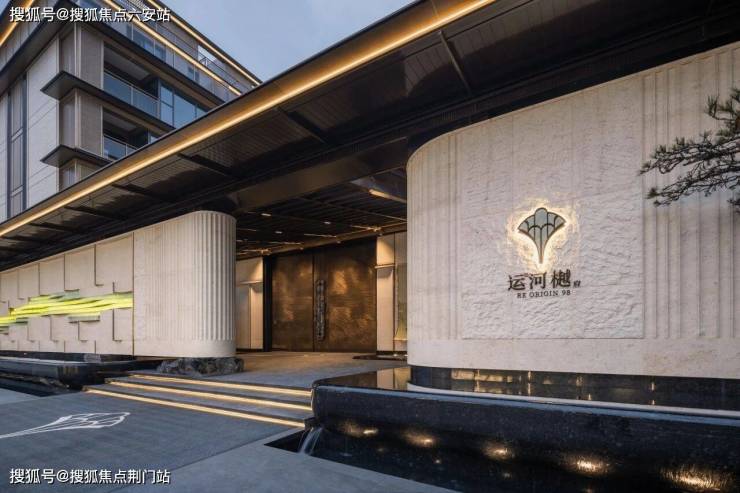 约80米的超长前场复刻运河的流水之韵,与透光奢石灯光辉映,气宇轩昂。金色瓦片叠出金顶,皇家碧玉、月光米黄构筑景墙,寓意“金碧辉煌”。