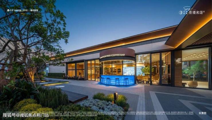 不同于多数门头生硬的隔离内外,崇璟和颂府引入香樟树、水景、引力橱窗、座椅,甚至还有一间咖啡馆。