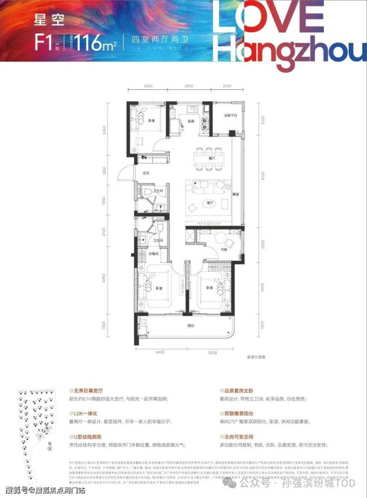 ❍建面约 116方边套四房两厅两卫户型