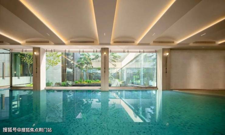 泳池外,6米高飞瀑倾泻而下,仿佛在自然山水间自在徜徉;一线品牌施菲特器械、百万级打造的健身房,让运动与窗外的泰山松水瀑景致相伴;还有峯域会客厅的全景落地窗,将下沉式庭院的绿意引入室内,搭配回形海派艺术酒廊,无论是咖啡阅读、商务洽谈,或是临时办公,皆有诗意。