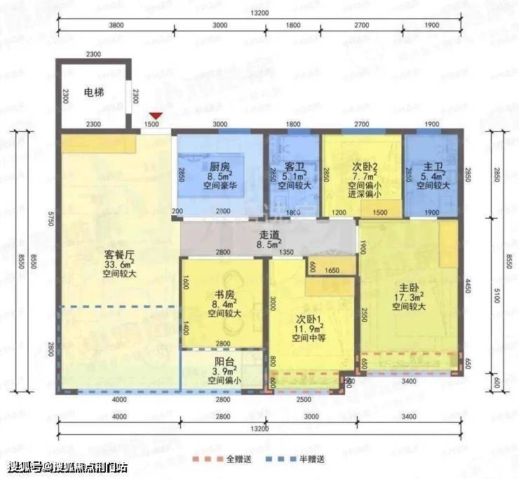 1)户型方正,四开间朝南,南向开间约13.2米,采光充足