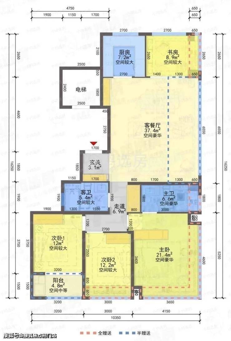 3.独立电梯厅+玄关+家政间+储物间+南向生活阳台+三卫配置,功能无死角