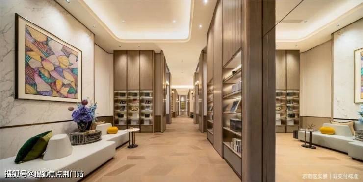 门头「高、阔、深」,高度约9.5米,宽度约66米,深度就像一座小广场,门口的奢石、水景,头顶的透光云石,都是Plus版。