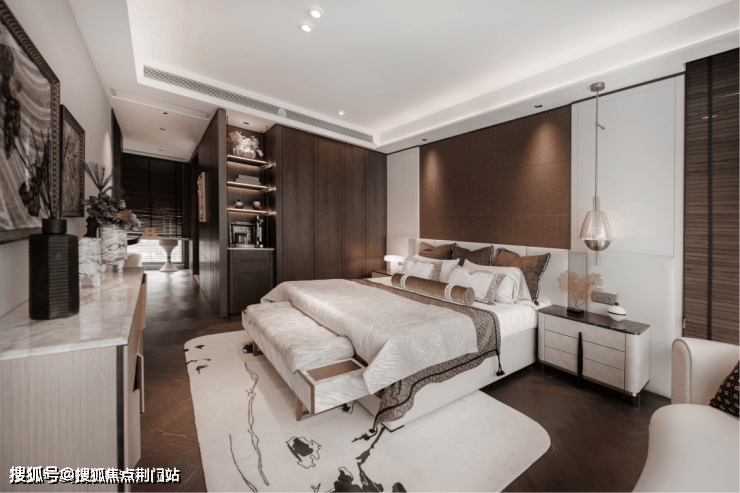 而真正的主卧,净面宽更是达到豪横的约3.5米。这和奥体2000万级、同面积段的住宅大平层的主卧尺度,其实不相上下。