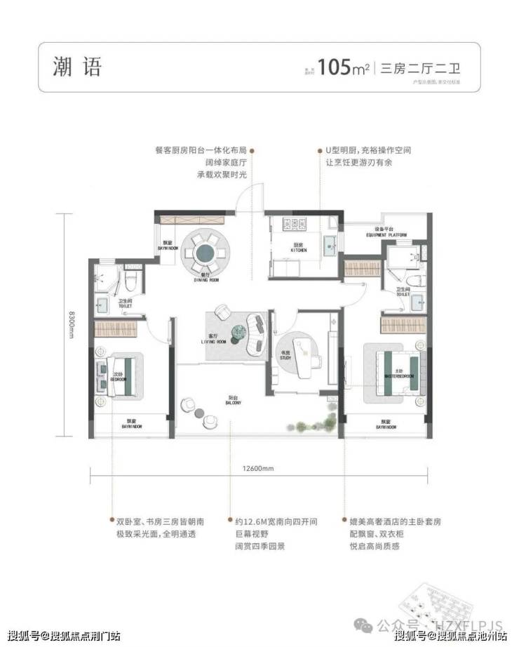 揽景小高层建筑面积约105-130㎡,为最大化景观面,突破性设计建筑面积约105㎡南向四开间。