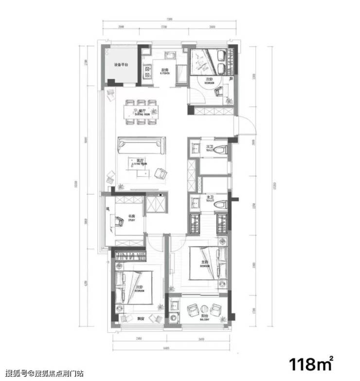 建面约119m² 四室两厅两卫: