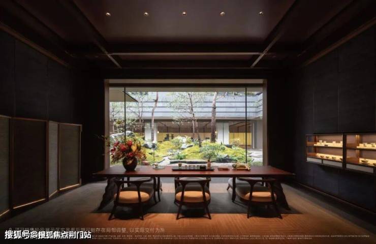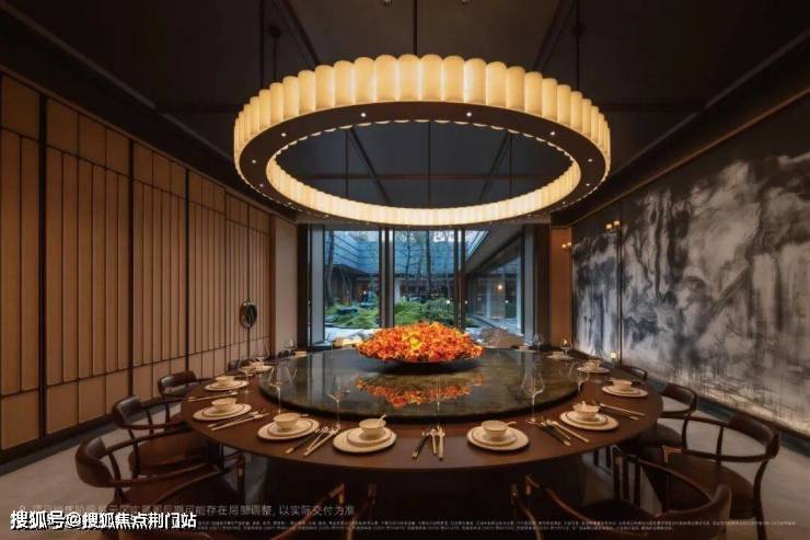私宴厅内,一侧是西式16人长桌,落地玻璃门一开,便与下沉庭院连成一体,春有花影,夏有凉风;另一侧是中式16人圆桌,最适合家人围坐,笑语盈室。