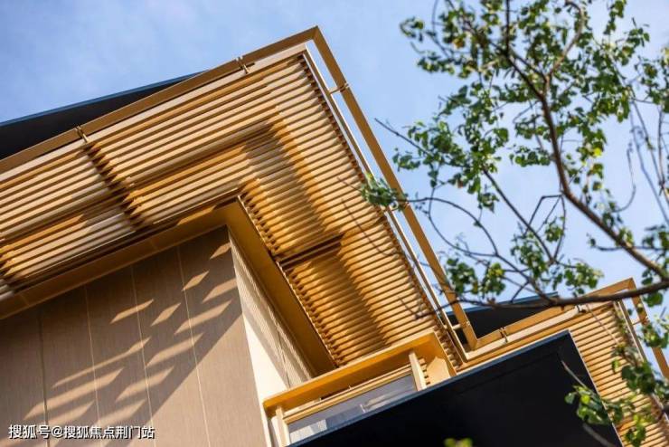 金:建筑立面中,使用了金色的金属格栅、型材,搭配出和谐的色彩感,施工工艺复杂,但可以使整个建筑在阳光下,散发出温润的光芒;
