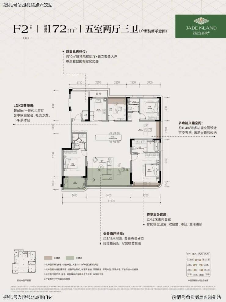 亮点:得益于新规,得房率约98%,实现五房布局,功能性强。
