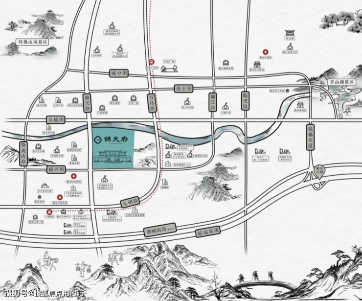 傲立锦城、锦南两大片区黄金交界处、地铁16号线九州街站为邻,锦天府——东坡先生的院子,在城市的山水与立体的路网之间,构筑起生活该有的诗意与高级烟火气。