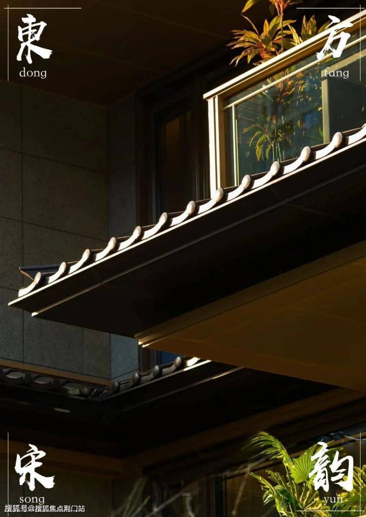 三重屋檐,代表天地人融合的东方宫殿最高等级,上檐、外檐、下檐三重结构,现代立面,以铝板、格栅、石材、瓦墙型材、玻璃等现代型材,彰显传世之宅的独特气度。摒弃早期中式建筑的白墙黑瓦,精研居住建筑的材质与色彩搭配,注重冷暖的多重对比。中式建筑的立面呈现出的不是粉墙黛瓦,而是「宋韵五色」。