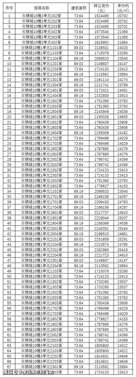 上下滑动查看68套住宅清单
