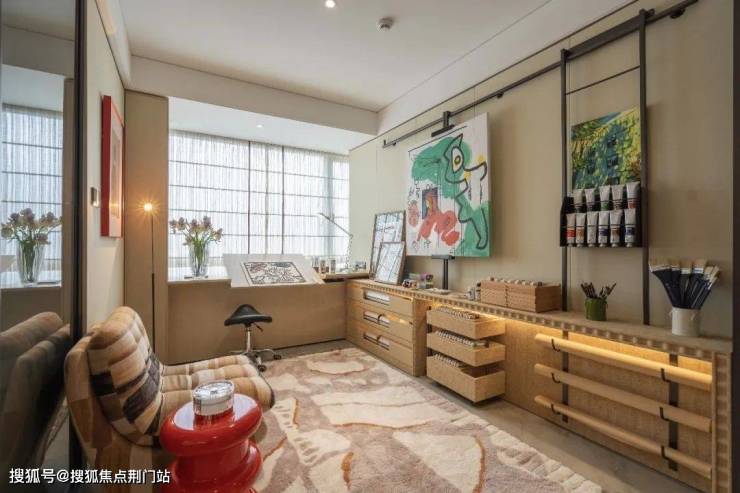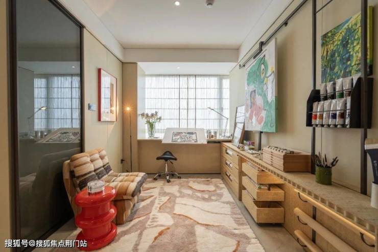 客厅的背景墙四周,不仅嵌满一面面吊柜和储物格,展示柜还装上灯带和玻璃门。你收藏的各种隐藏款Labubu,这里就是最好的舞台。春来晴翠园称之为“情绪收纳”。