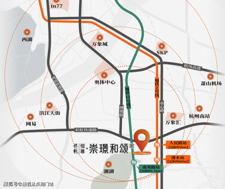 东侧市心路市北和奥体无缝衔接庆春路,直通钱江新城和西湖湖滨。西侧蜀山路博奥路相连,畅通、辐射萧山、奥体、滨江及对岸钱江新城。地铁2号线潘水站(直距约800m)、人民路站(直距约1km),即可畅通全城。同时6站滨江、9站奥体,在滨奥工作,在萧山生活,快节奏工作之余,也为置业者带来更舒缓的生活享受。