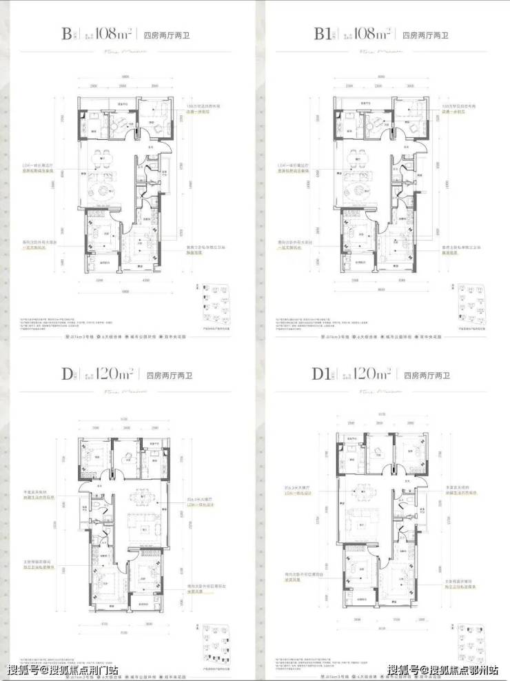更大一些的户型如建面约 108㎡、120m²的四房边套 设计,不仅面积宽敞,南向双卧室+客厅大飘窗的设计也提升了居住舒适度。
