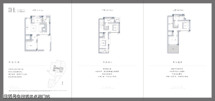 建面约180方户型,可做到五房四卫的格局, 不仅起居室全部朝南,还带前院和露台。