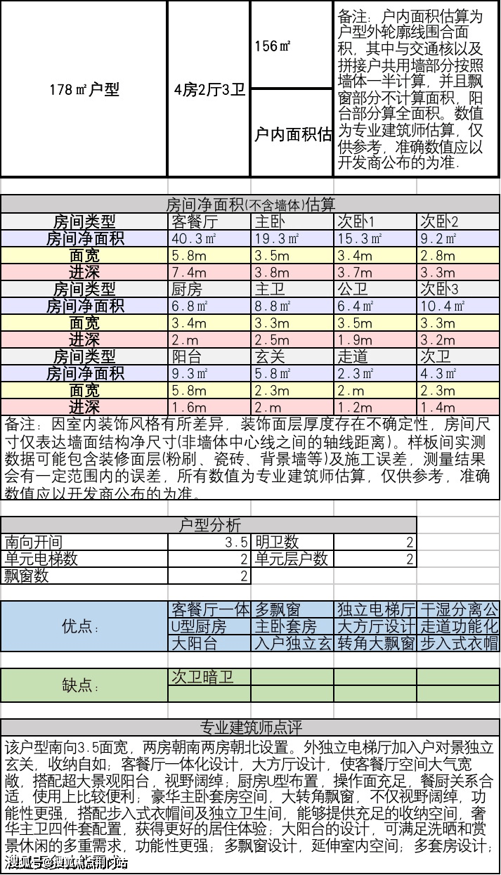 3.建面约178方4房2厅3卫: