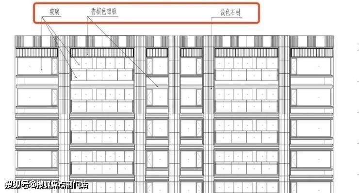 1、米色石材搭配香槟色铝板,和华润钱二6万+豪宅翡云润府有点像;