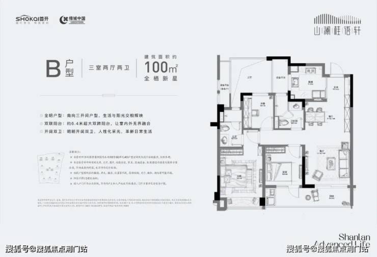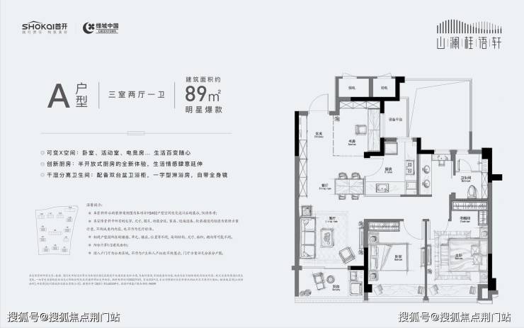 3+1潮变户型:三房空间+封闭式阳台,首付99万起,得房率79%