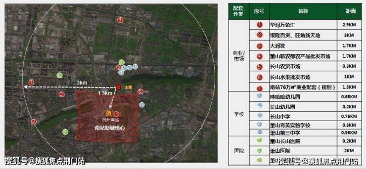 南站核心:距杭州南站直线距离约1.3km(南站新城总面积约20平方公里,政府定位极高,以“经济增长新极核,创智汇聚新核心”为发展目标,构建集交通枢纽、科创商务、智慧物流、国际贸易、生活办公、文旅一体的新城核心)仅南站核心区规划67万方商业(规模相当于6座龙湖天街、7座万象城)