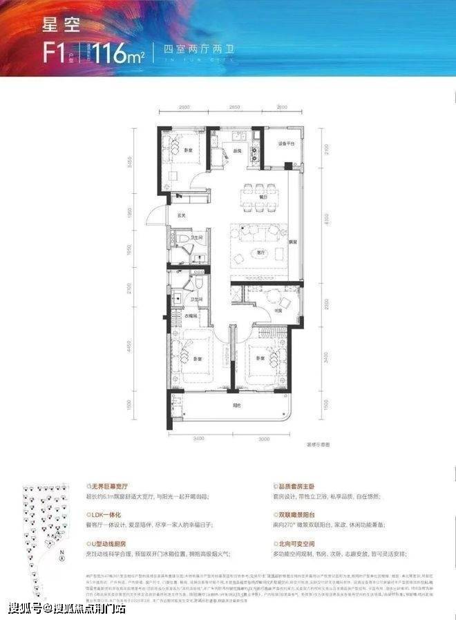 独立玄关收纳南边套房主卧带走入式衣帽间+独立卫浴+飘窗南向约6.4米面宽,带阳台,U型厨房带大开窗,餐客厅一体带约5.8米超长飘窗……该户型更具有生命力。