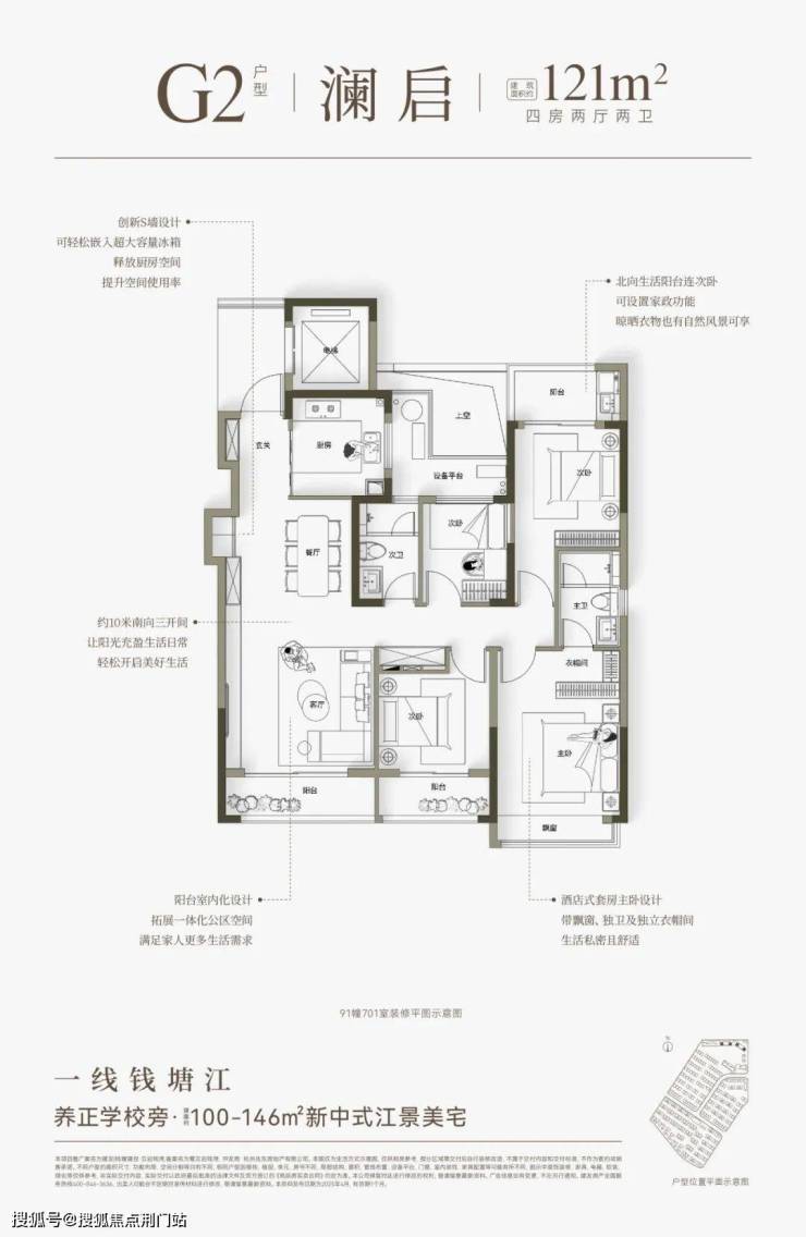 建面约100-146方宽宅,最大化瞰江、景观、采光、通风等,不仅尺度奢适,而且总价可控。