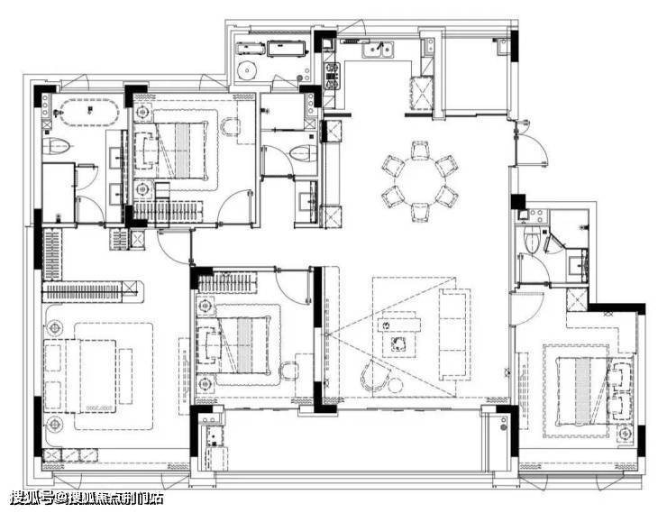 客厅+三卧朝南的结构最适合多人口家庭,男女主人、父母长辈、孩子都可以住朝南的房间,彻底实现“阳光平权”。