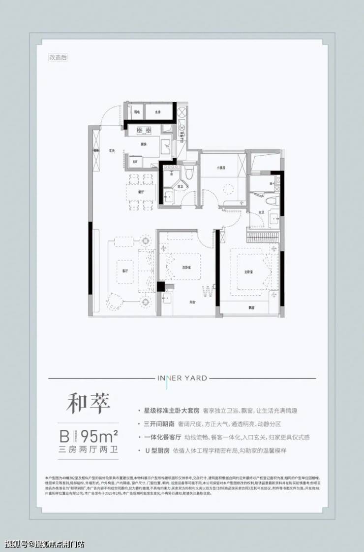 建面约95㎡是准入门槛,中间套三房。