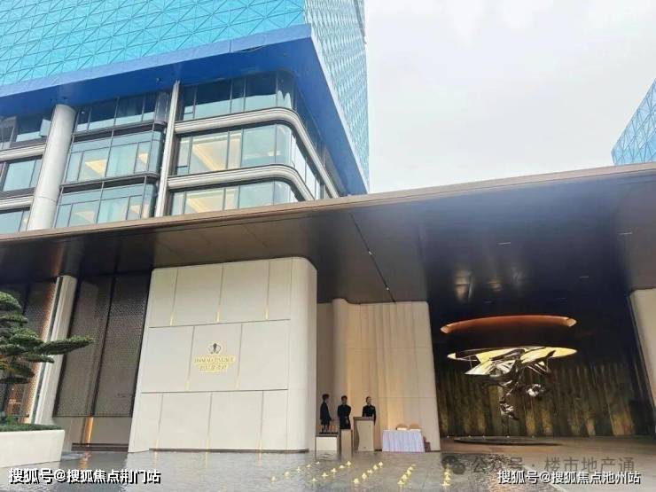 大门出入口在南面祥园路,景观上复刻安缦酒店的氛围感和松弛感,65米恢弘门庭气势夺人,30米的长镜面水景,门口的罗汉松价值超百万,波光灿影巨厅,进口的意大利宝格丽绿奢石和皇家白玉石,情绪价值满分