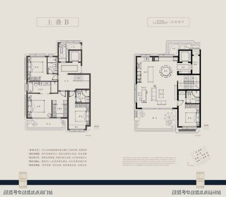 空间设计充分发挥了纯四层叠墅的产品优势,上下叠的独立入户,上下叠独立的归家动线,互不干扰。此外,上叠卧室静区在三层,客餐厅放置在四层、外联大露台,有效避免了与下叠休息静区的彼此干扰,动静分层有序处处有景。