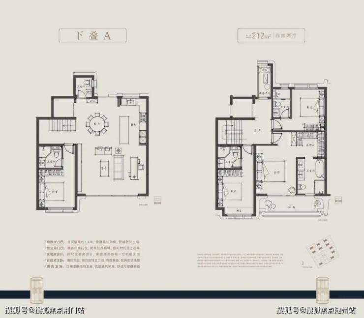 户型方面,主力建面约210-280㎡四层叠墅,采用全套房设计,朝南大开间阳光满堂,主卧“小家化”,步入式衣帽间和独立卫浴间兼备,更大尺度的面积,更开阔的家庭社交区,更舒适的套房空间。约6米层高地下空间,多出一大片公共活动空间。大部分下叠设计了双采光井,在地下室也可以获得充分的自然光。
