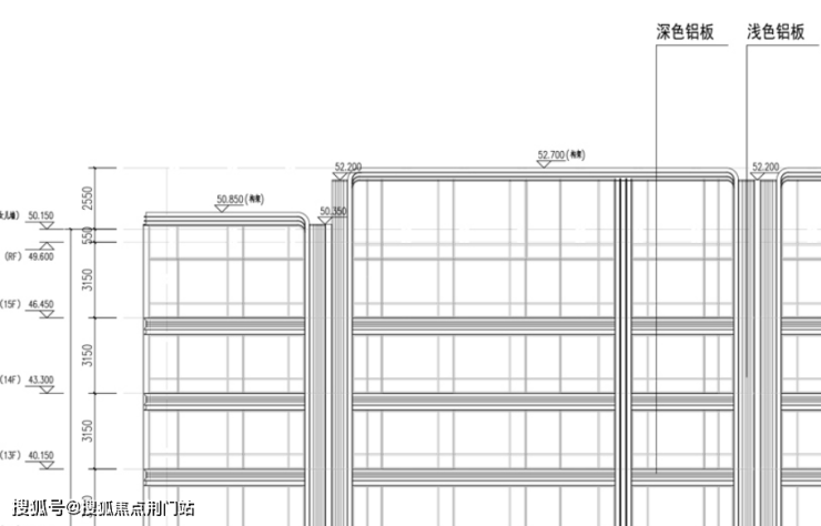 外立面则以深色铝板+浅色铝板+浅灰色玻璃搭配组成,效果比较简约、大气。