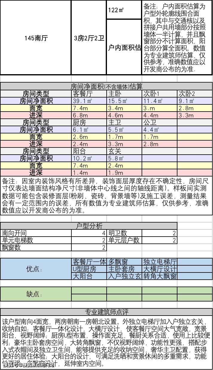 2.建面约145方4房2厅2卫: